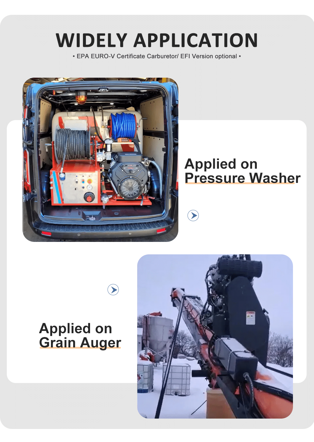 - Cold-Region & Outdoor Equipment – EFI system ensures reliable starting and operation in low-temperature environments